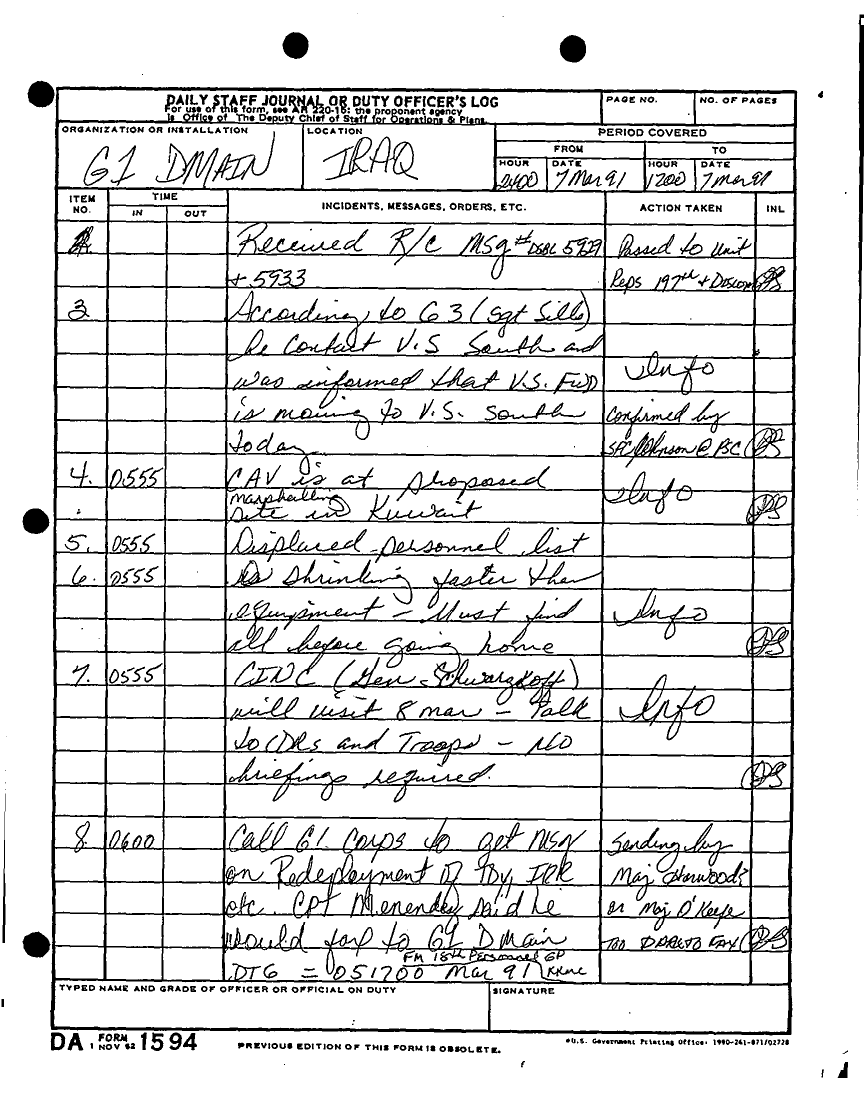 Document 135 f:/Week-22/BX001433/MESSAGE-TELEPHONE TRAFFIC/daily staff journal or duty officers log:06219615521613