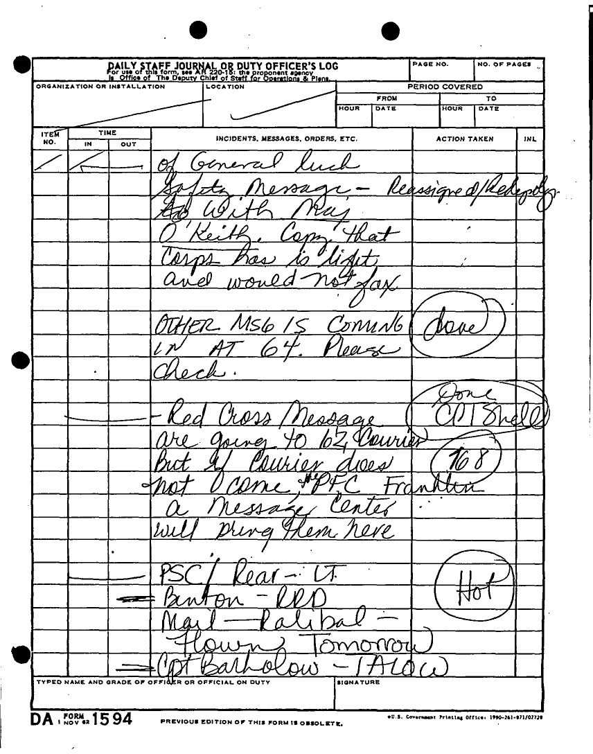 Document 135 f:/Week-22/BX001433/MESSAGE-TELEPHONE TRAFFIC/daily staff journal or duty officers log:06219615521613