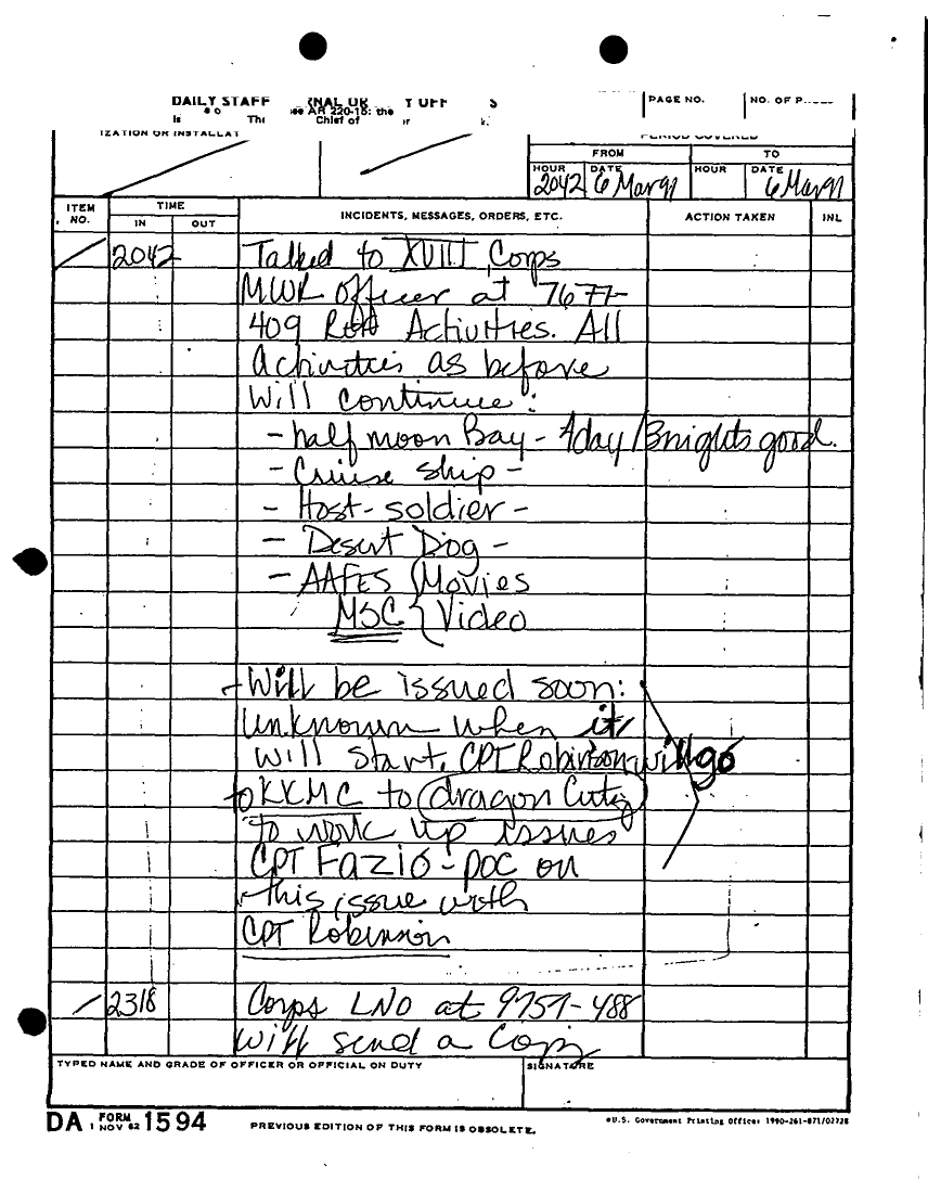 Document 135 f:/Week-22/BX001433/MESSAGE-TELEPHONE TRAFFIC/daily staff journal or duty officers log:06219615521613
