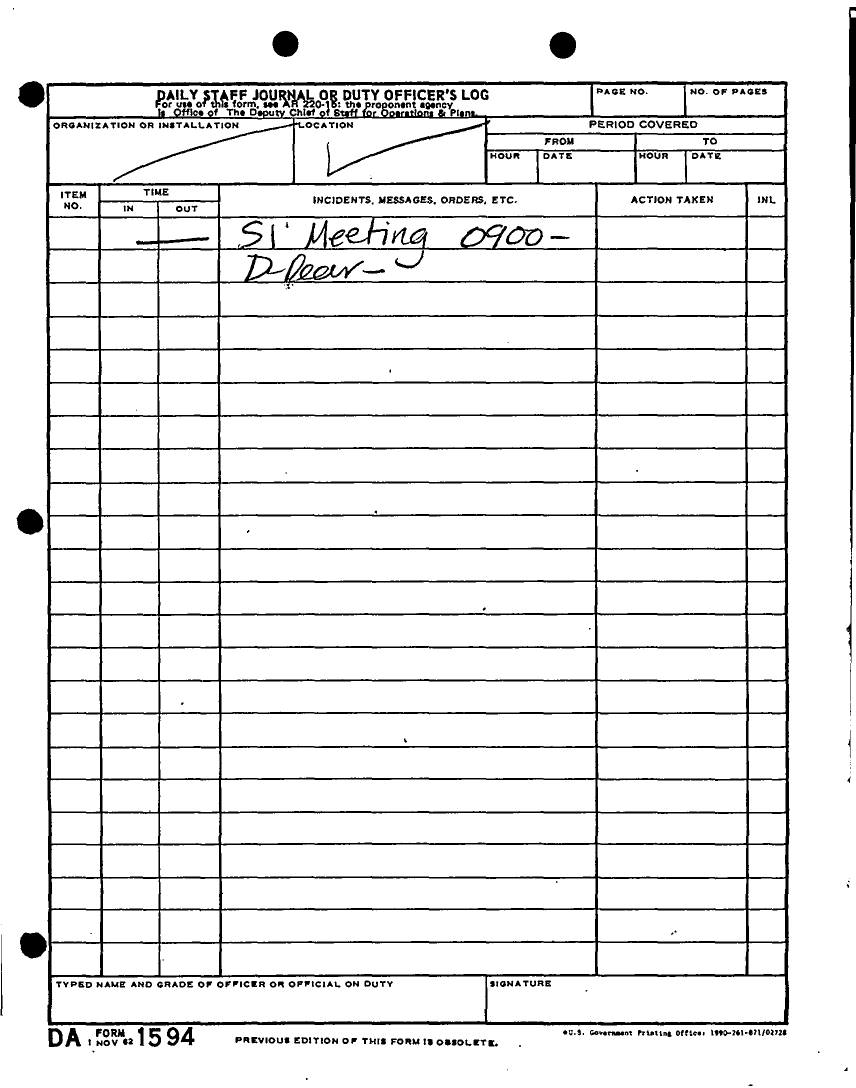 Document 135 f:/Week-22/BX001433/MESSAGE-TELEPHONE TRAFFIC/daily staff journal or duty officers log:06219615521613
