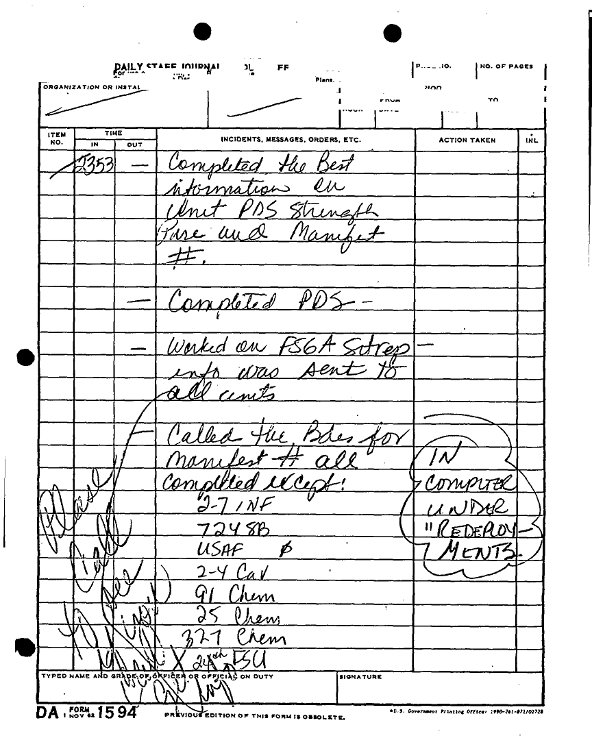 Document 135 f:/Week-22/BX001433/MESSAGE-TELEPHONE TRAFFIC/daily staff journal or duty officers log:06219615521613