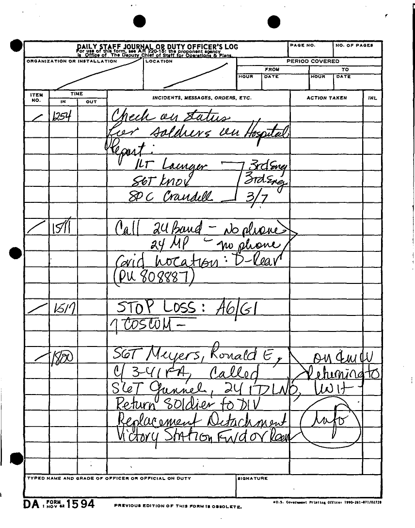 Document 135 f:/Week-22/BX001433/MESSAGE-TELEPHONE TRAFFIC/daily staff journal or duty officers log:06219615521613