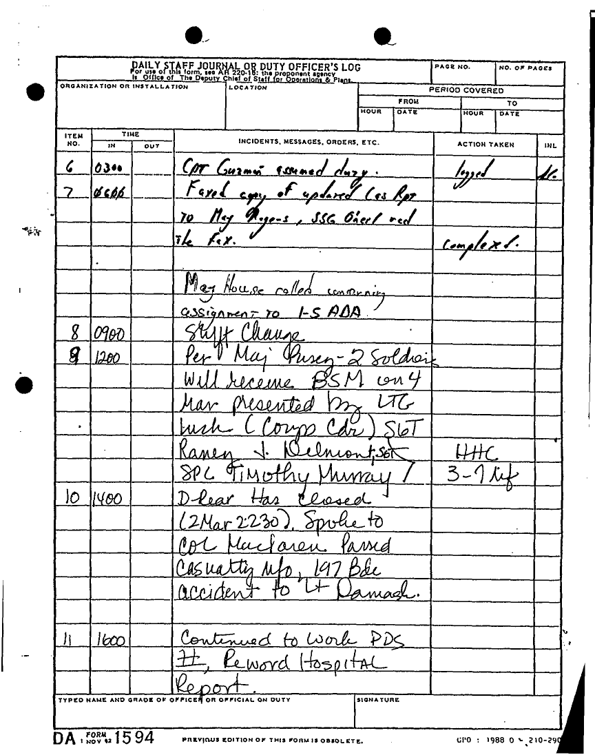 Document 135 f:/Week-22/BX001433/MESSAGE-TELEPHONE TRAFFIC/daily staff journal or duty officers log:06219615521613