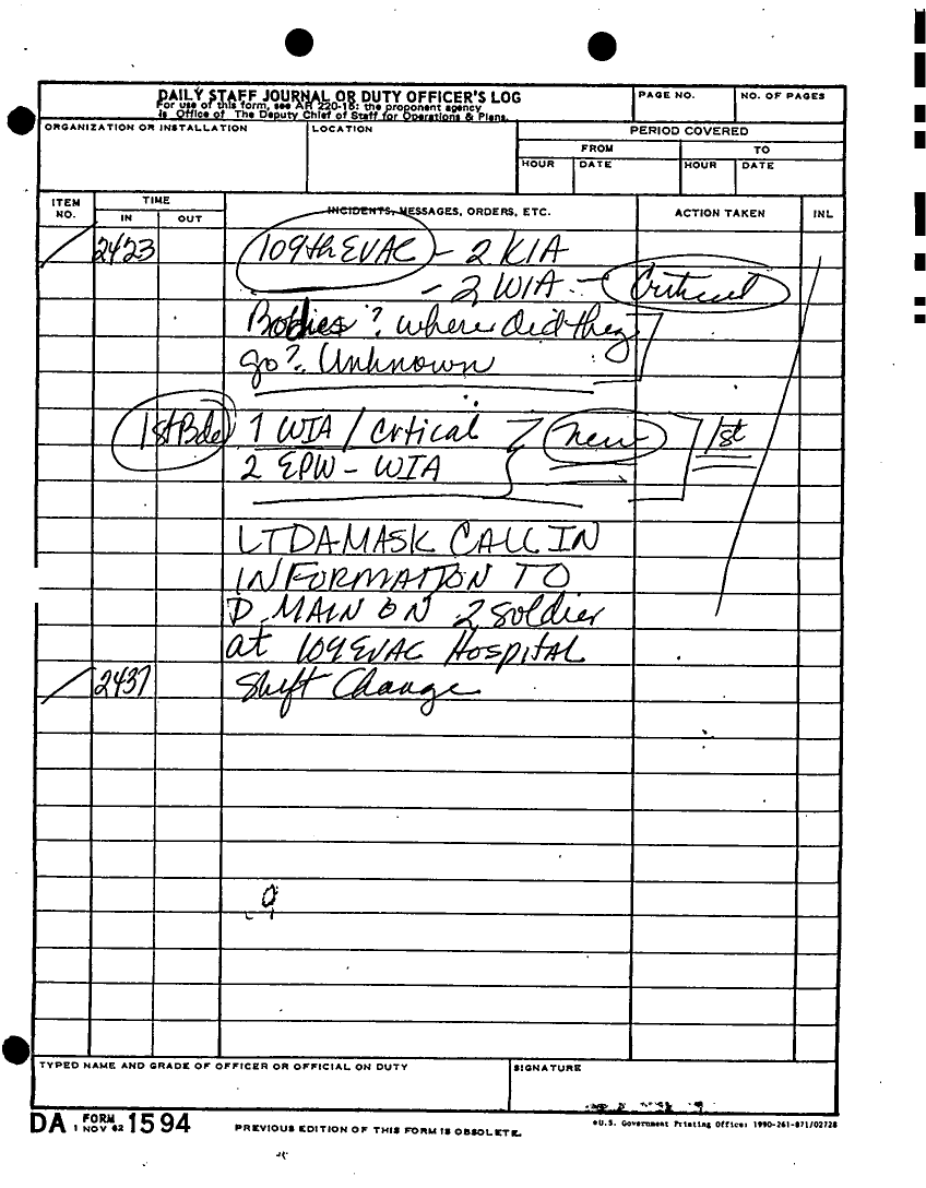 Document 135 f:/Week-22/BX001433/MESSAGE-TELEPHONE TRAFFIC/daily staff journal or duty officers log:06219615521613