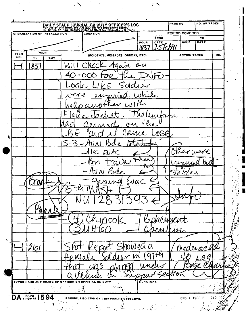 Document 135 f:/Week-22/BX001433/MESSAGE-TELEPHONE TRAFFIC/daily staff journal or duty officers log:06219615521613