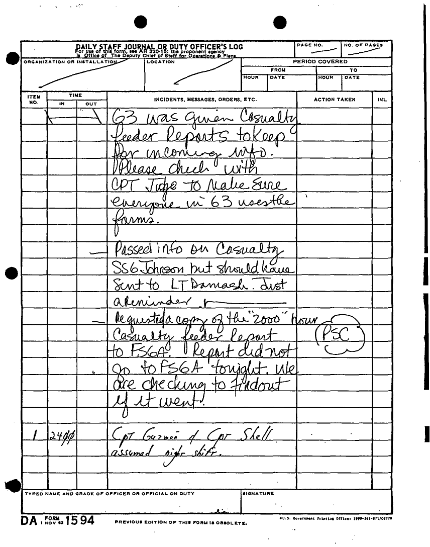 Document 135 f:/Week-22/BX001433/MESSAGE-TELEPHONE TRAFFIC/daily staff journal or duty officers log:06219615521613