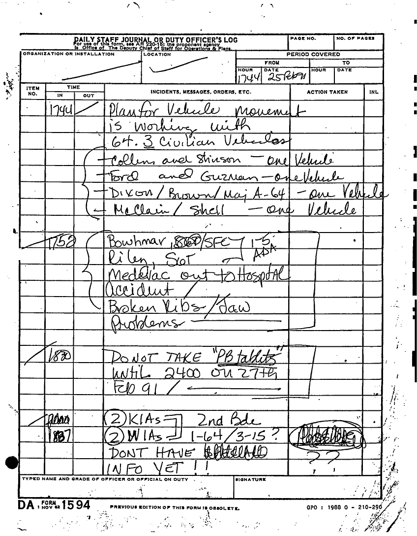 Document 135 f:/Week-22/BX001433/MESSAGE-TELEPHONE TRAFFIC/daily staff journal or duty officers log:06219615521613