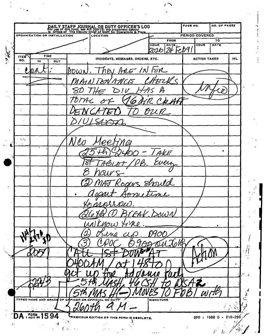 Document 135 f:/Week-22/BX001433/MESSAGE-TELEPHONE TRAFFIC/daily staff journal or duty officers log:06219615521613