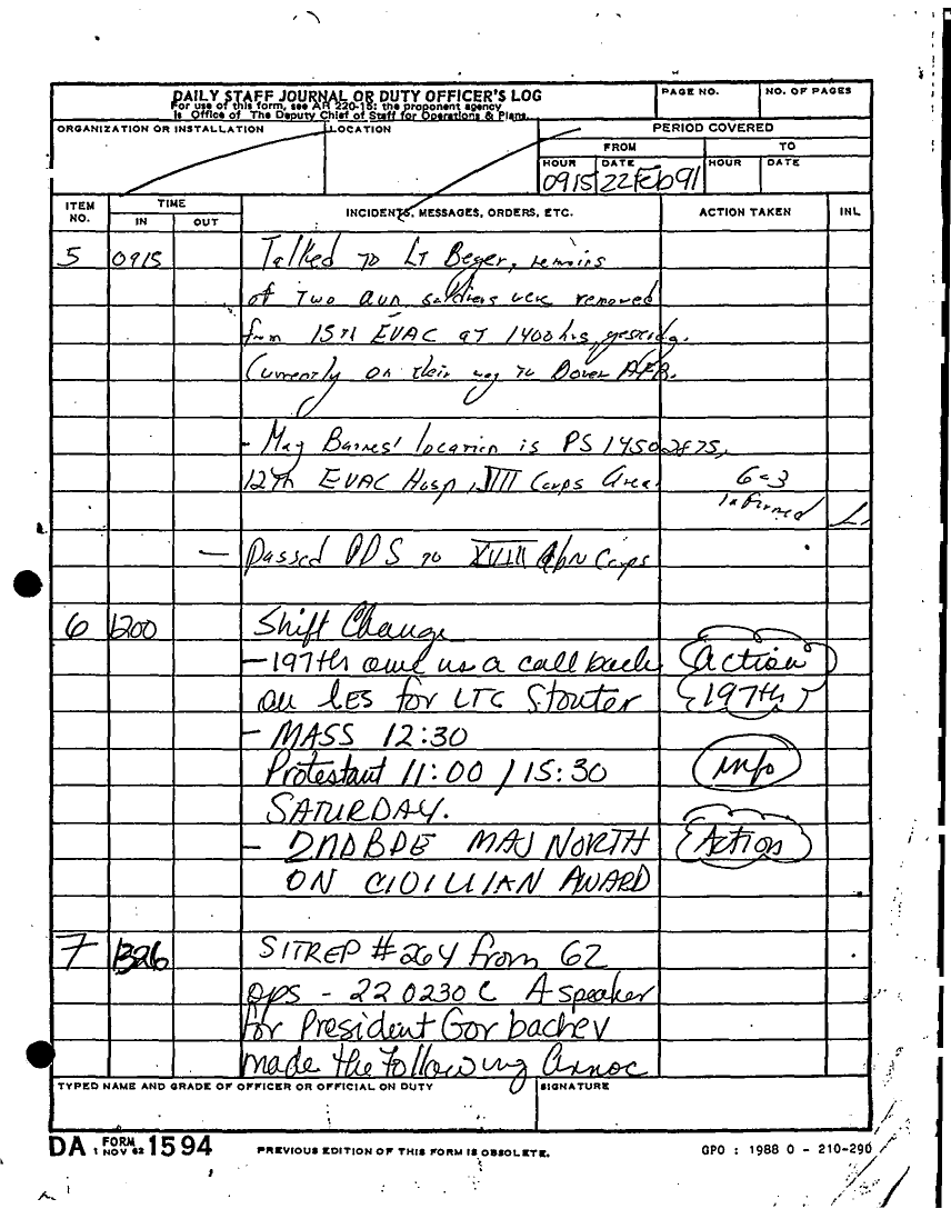 Document 135 f:/Week-22/BX001433/MESSAGE-TELEPHONE TRAFFIC/daily staff journal or duty officers log:06219615521613