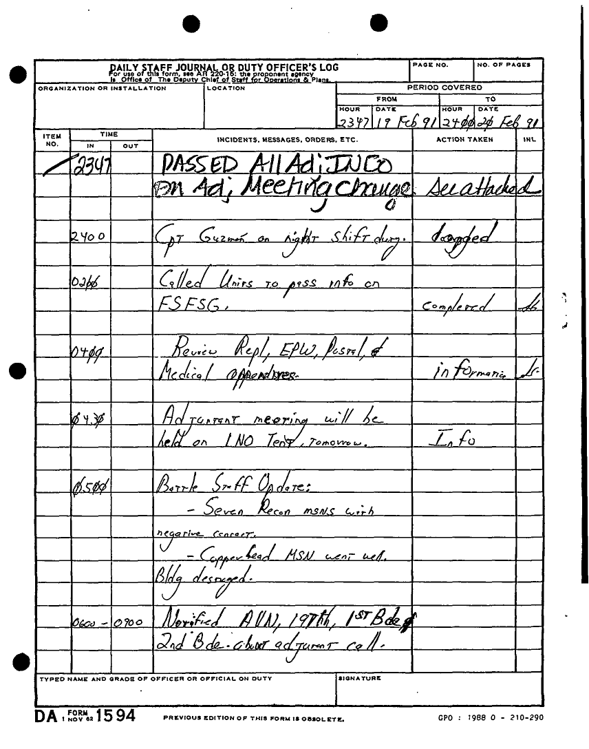 Document 135 f:/Week-22/BX001433/MESSAGE-TELEPHONE TRAFFIC/daily staff journal or duty officers log:06219615521613