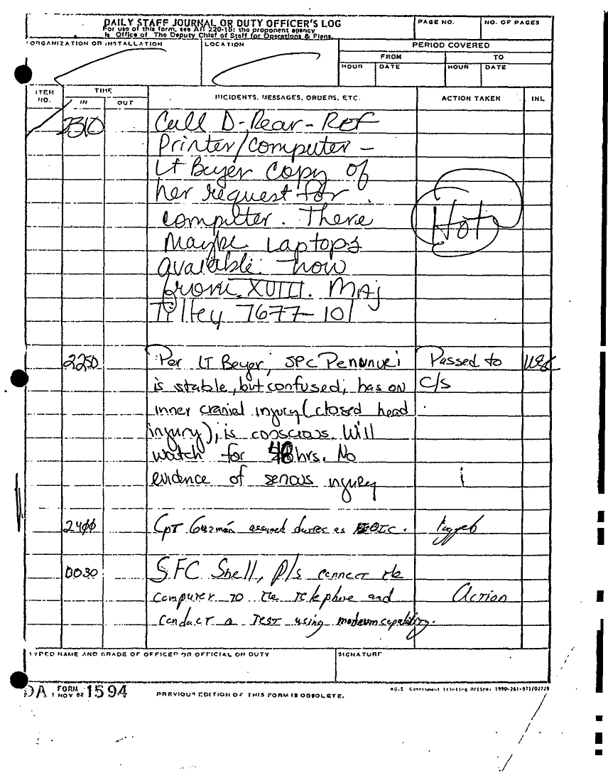 Document 135 f:/Week-22/BX001433/MESSAGE-TELEPHONE TRAFFIC/daily staff journal or duty officers log:06219615521613