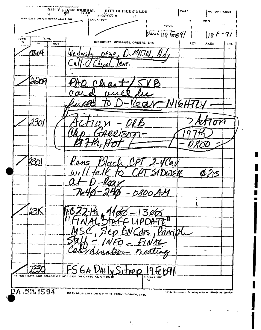 Document 135 f:/Week-22/BX001433/MESSAGE-TELEPHONE TRAFFIC/daily staff journal or duty officers log:06219615521613