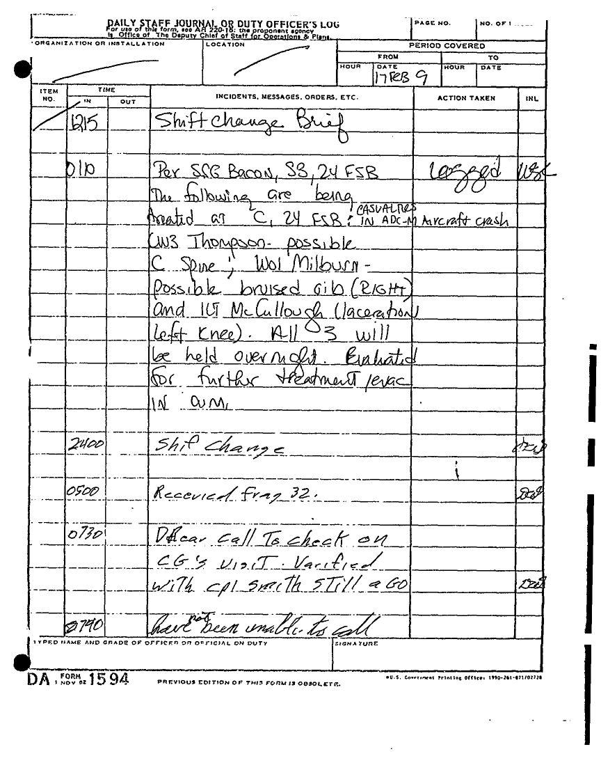 Document 135 f:/Week-22/BX001433/MESSAGE-TELEPHONE TRAFFIC/daily staff journal or duty officers log:06219615521613