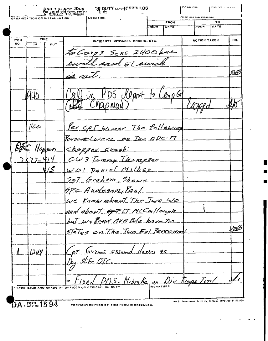 Document 135 f:/Week-22/BX001433/MESSAGE-TELEPHONE TRAFFIC/daily staff journal or duty officers log:06219615521613