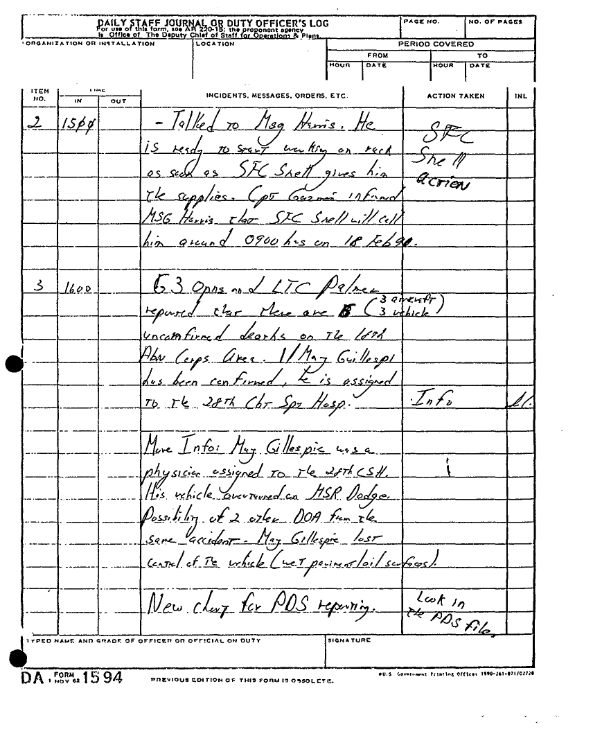 Document 135 f:/Week-22/BX001433/MESSAGE-TELEPHONE TRAFFIC/daily staff journal or duty officers log:06219615521613