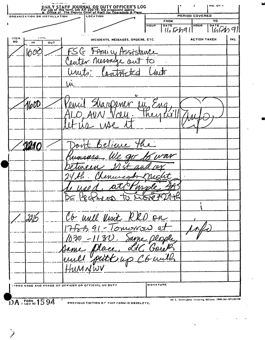 Document 135 f:/Week-22/BX001433/MESSAGE-TELEPHONE TRAFFIC/daily staff journal or duty officers log:06219615521613