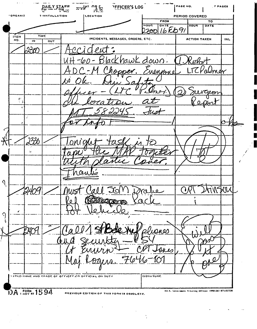 Document 135 f:/Week-22/BX001433/MESSAGE-TELEPHONE TRAFFIC/daily staff journal or duty officers log:06219615521613
