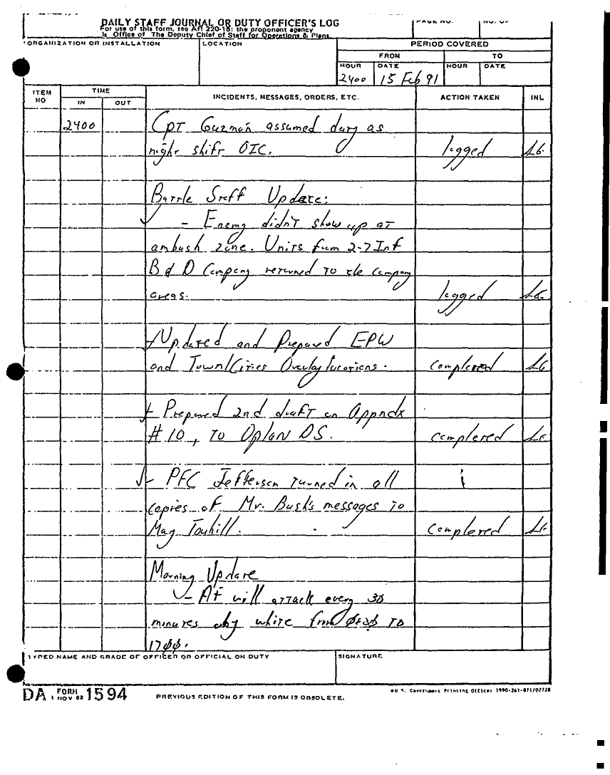 Document 135 f:/Week-22/BX001433/MESSAGE-TELEPHONE TRAFFIC/daily staff journal or duty officers log:06219615521613