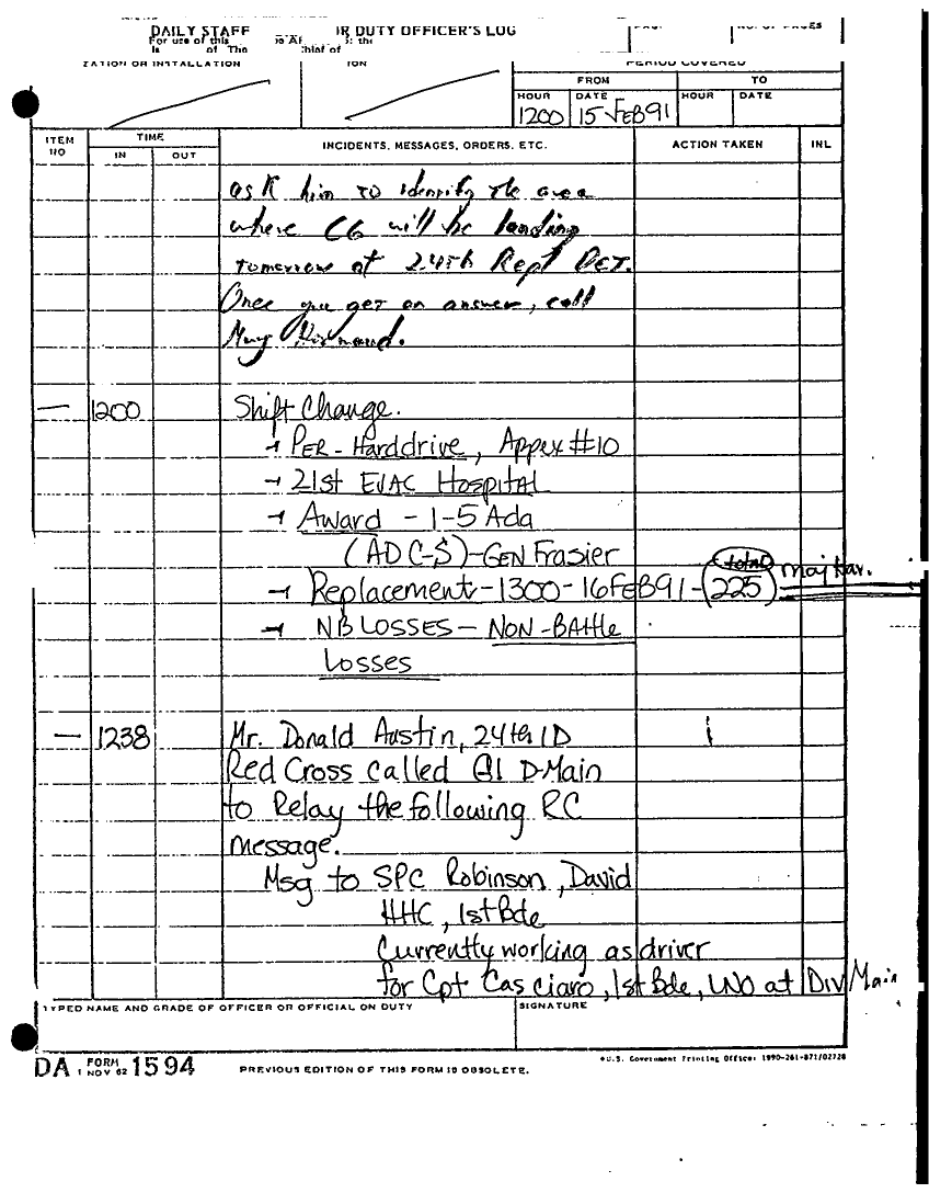 Document 135 f:/Week-22/BX001433/MESSAGE-TELEPHONE TRAFFIC/daily staff journal or duty officers log:06219615521613