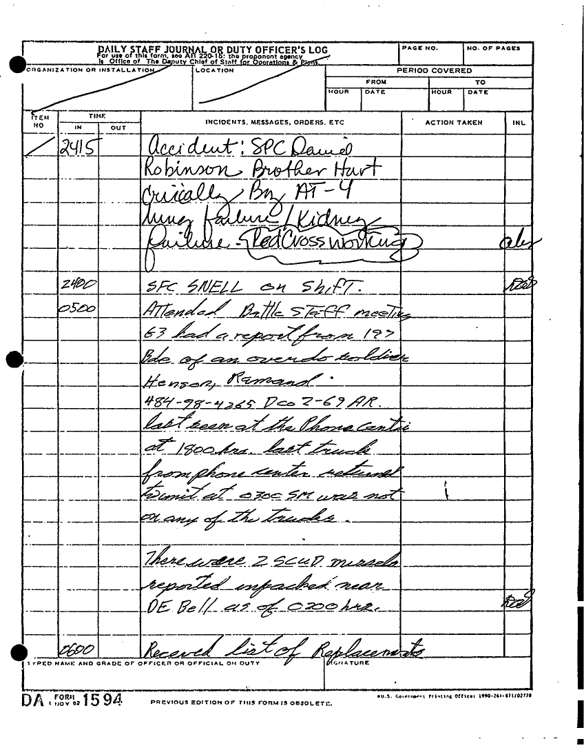 Document 135 f:/Week-22/BX001433/MESSAGE-TELEPHONE TRAFFIC/daily staff journal or duty officers log:06219615521613