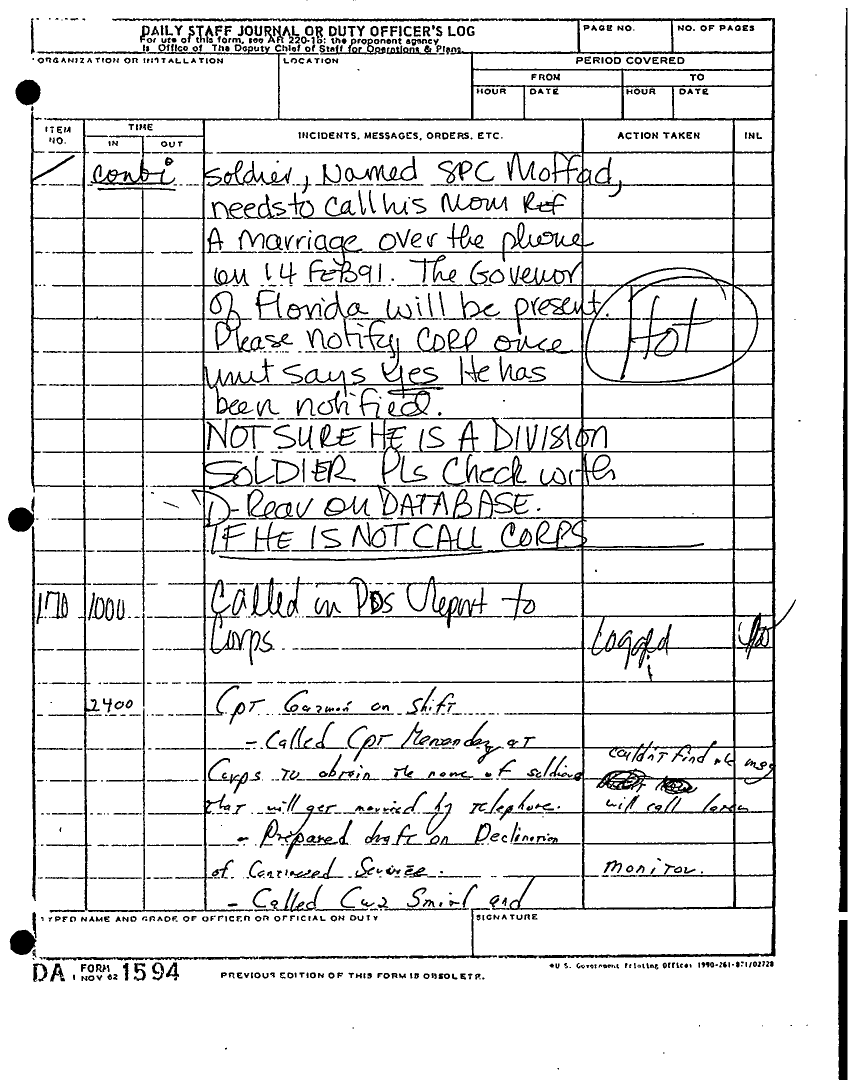 Document 135 f:/Week-22/BX001433/MESSAGE-TELEPHONE TRAFFIC/daily staff journal or duty officers log:06219615521613