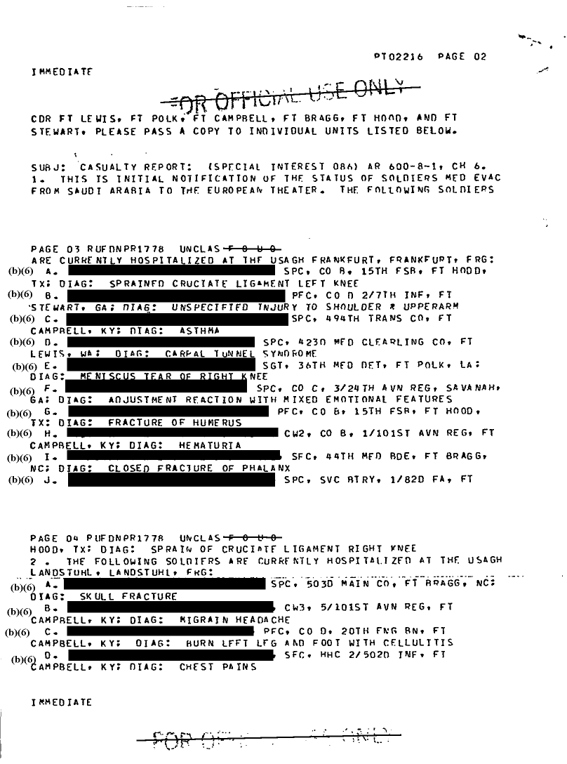 Document 3 f:/Week-22/BX001428/INCOMING MESSAGES DESERT SHIELD MEDDAC NOV/casualty report special interest 086:06219615522221