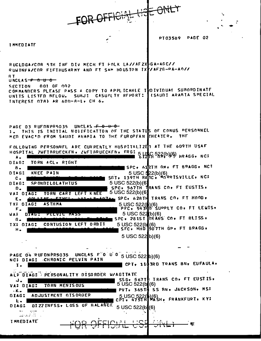 Document 7 f:/Week-20/BX001419/incoming desert shield messages meddac feb - 2/casualty reports 19 feb 91:06219615523545