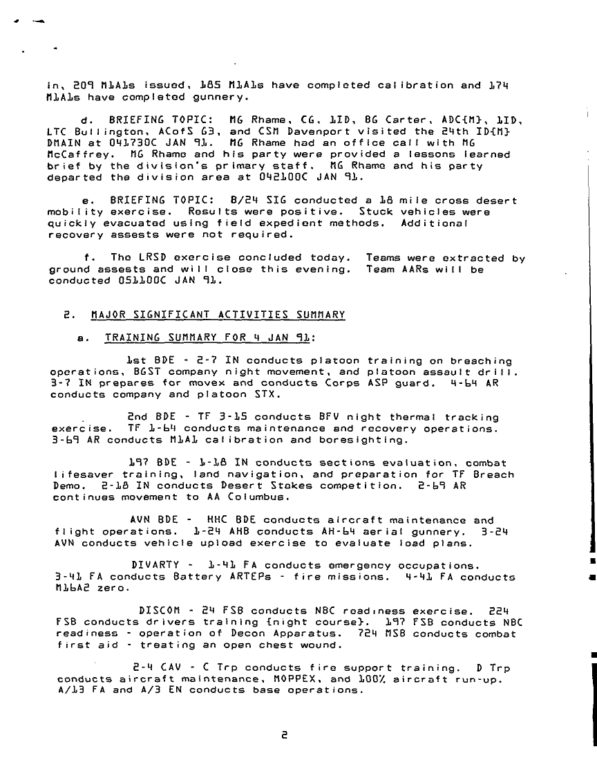 Document 4 f:/Week-22/BX001427/MISC MESSAGES/commanders daily sitrep:07019618403524