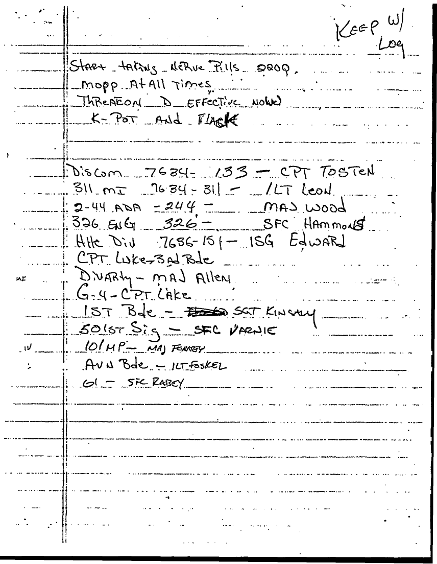 Document 1 f:/Week-22/BX001605/101ST ABN DIV AASLT DUTY LOG JAN 91-B/mopp at all times threatcon d effective:07019618403829