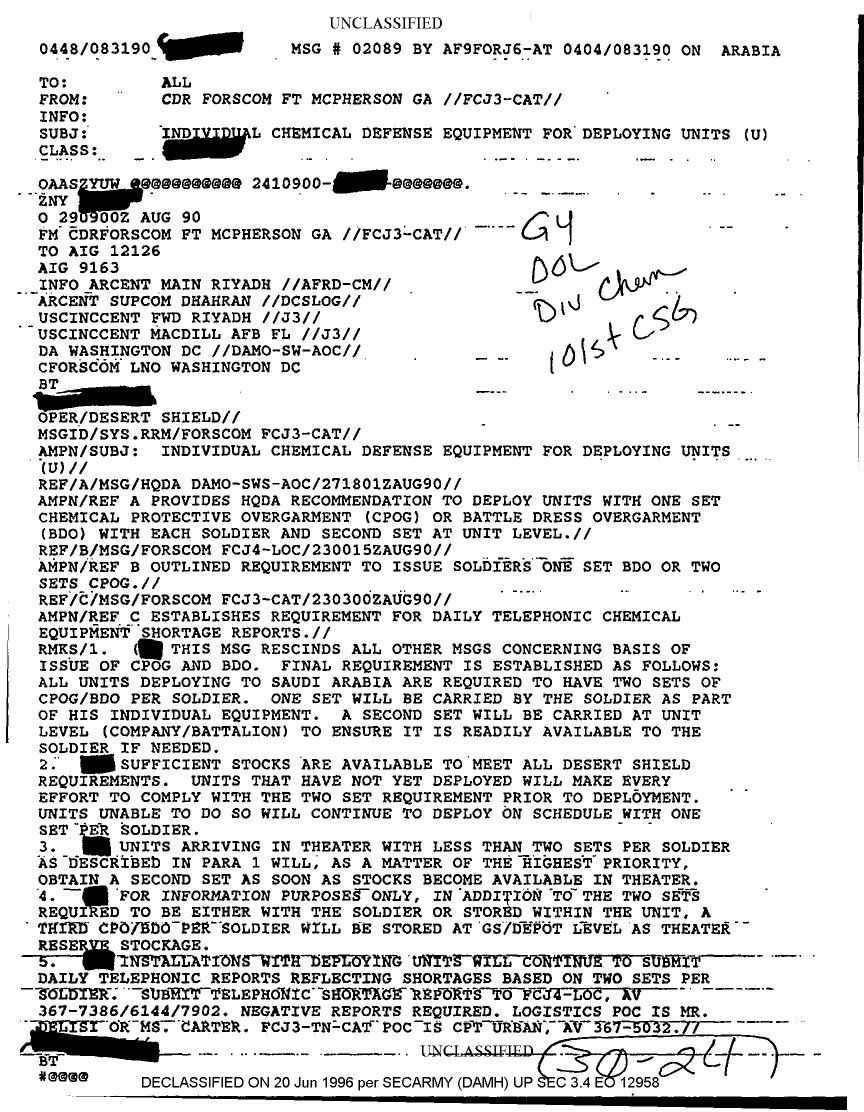 Document 1 f:/Week-22/BX001604/MESSAGES AND STATUS REPORTS/message individual chemical defense equipment f:07019618410677