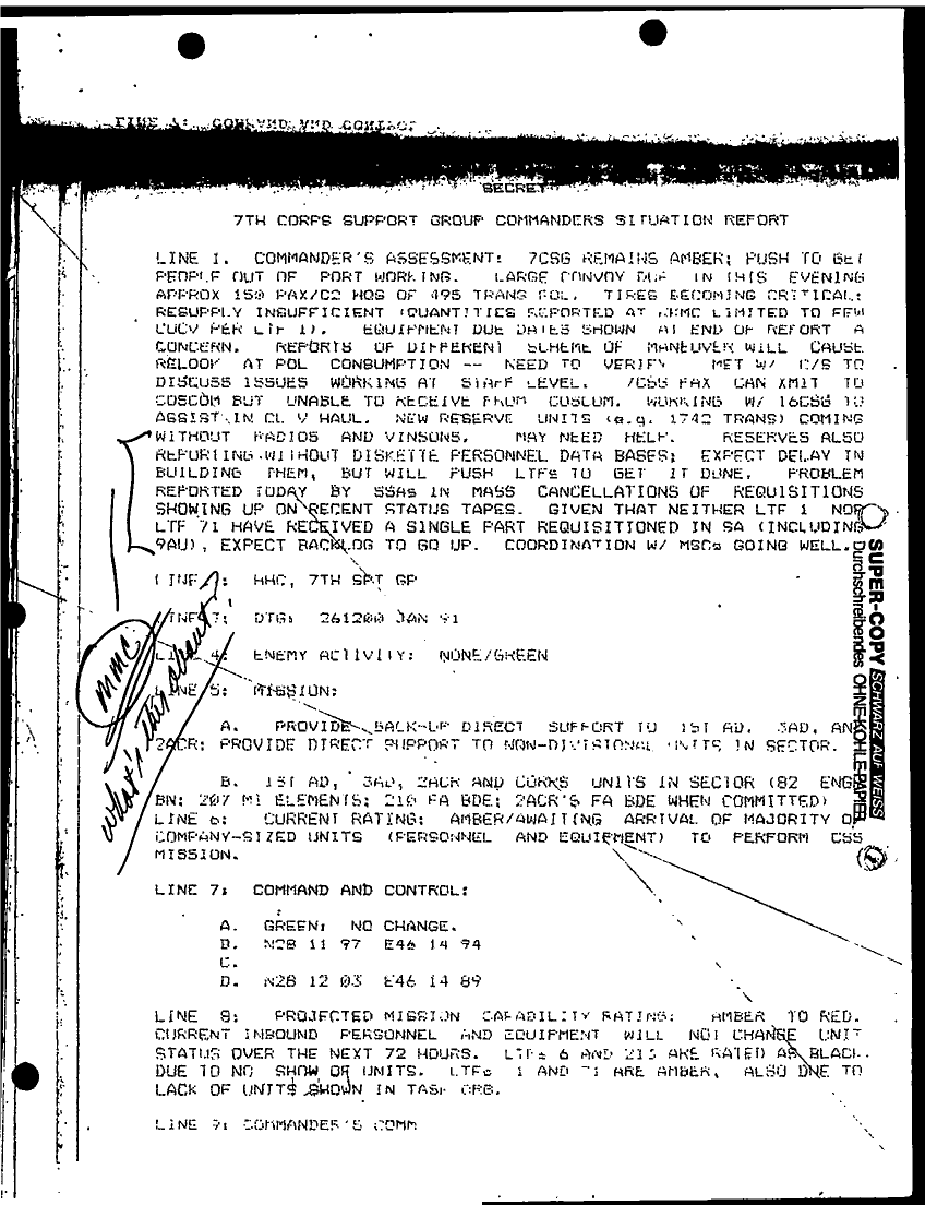 Document 15 f:/Week-24/BX000233/2 COSCOM TASKERS FROM SITREP - BINDER/cmdrs sitrep notes 26 jan 91:07019618411084