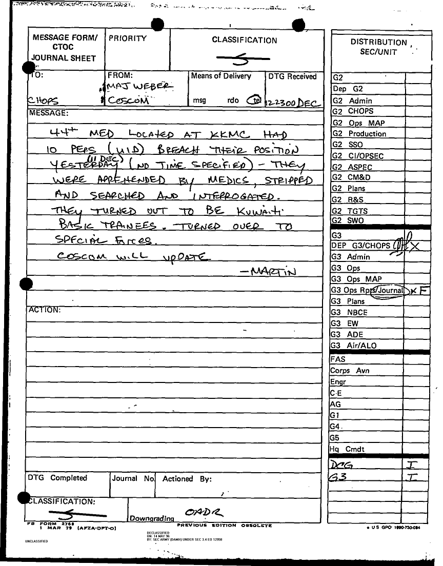Document 77 f:/Week-16/BX000054/DUTY LOG REAR CP G3 13 DEC 90/xviii abn corps rcp perintrep:07059613421310