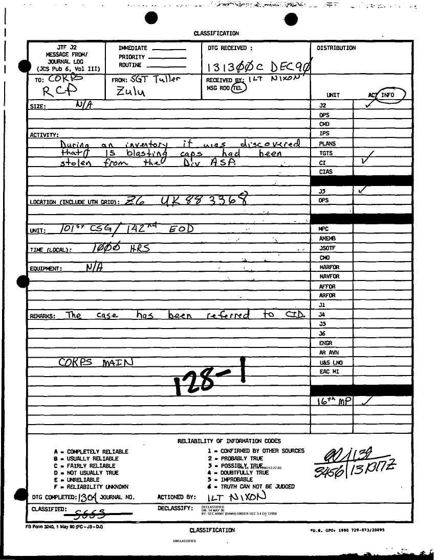 Document 77 f:/Week-16/BX000054/DUTY LOG REAR CP G3 13 DEC 90/xviii abn corps rcp perintrep:07059613421310