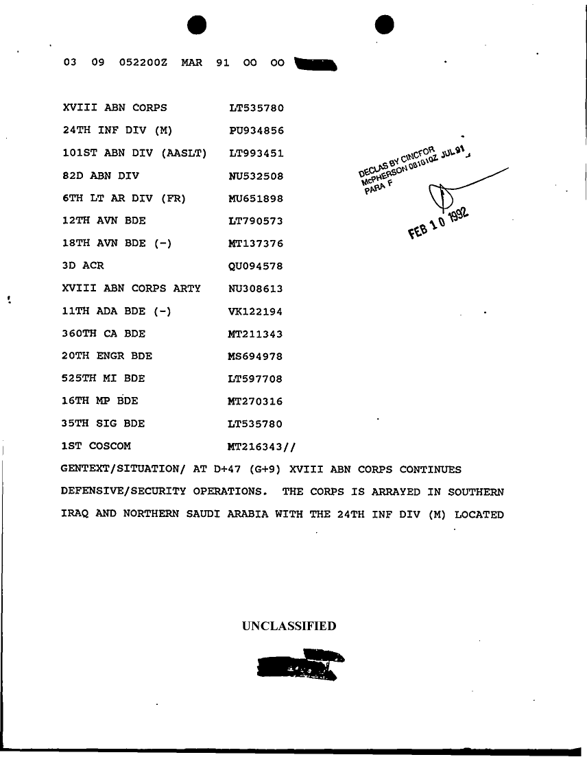 Document 7 f:/Week-14/BX000042/SITUATION REPORTS FEB-MAR 91/sitrep xviii abn corps 005 mar 91:07059613424446