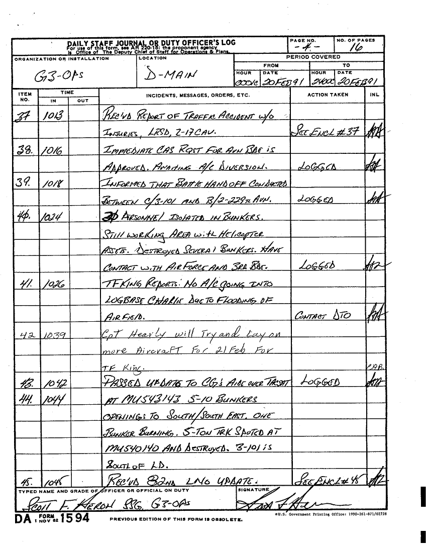 Document 59 f:/Week-22/BX001602/DUTY LOGS G3 MAIN 19-22 FEB 91/daily staff journal 20 feb 91:07059613421614