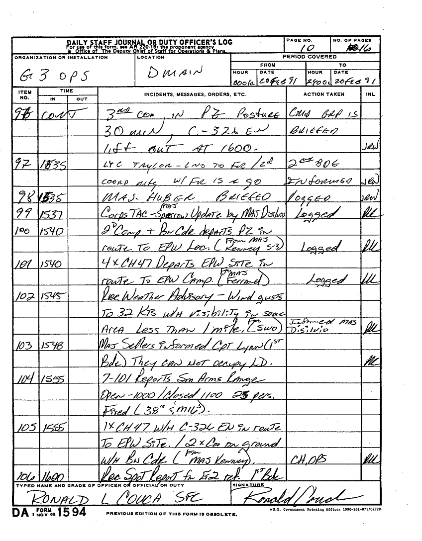 Document 59 f:/Week-22/BX001602/DUTY LOGS G3 MAIN 19-22 FEB 91/daily staff journal 20 feb 91:07059613421614