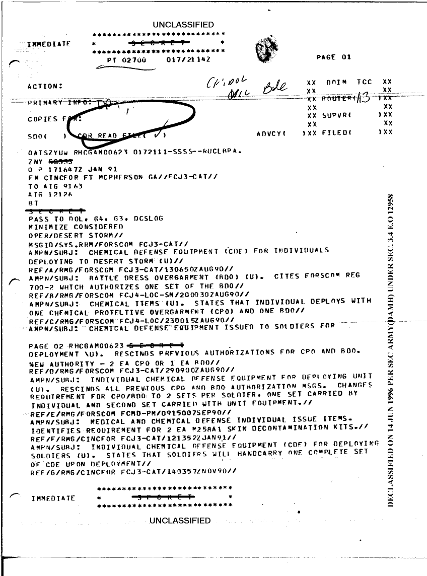 Document 3 f:/Week-22/BX001428/INCOMING MESSAGES DESERT SHIELD G4 JAN/chemical defense equipment 17 jan 91:07059613421919