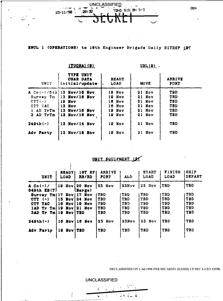 Document 3 f:/Week-25/BX000209/DUTY LOG 7TH ENG BDE 21-24 NOV 90/18th engineer brigade daily sitrep:07129615522713