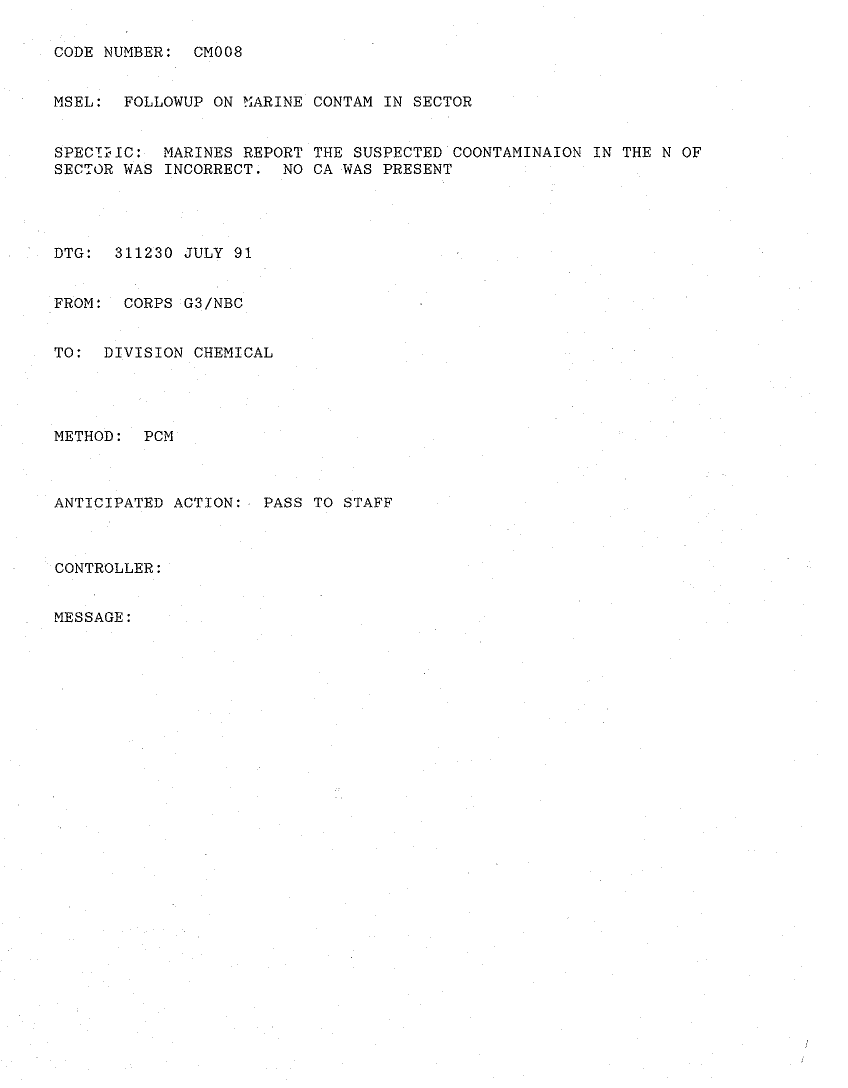 Subject = FOLLOWUP ON MARINE CONTAM IN SECTOR