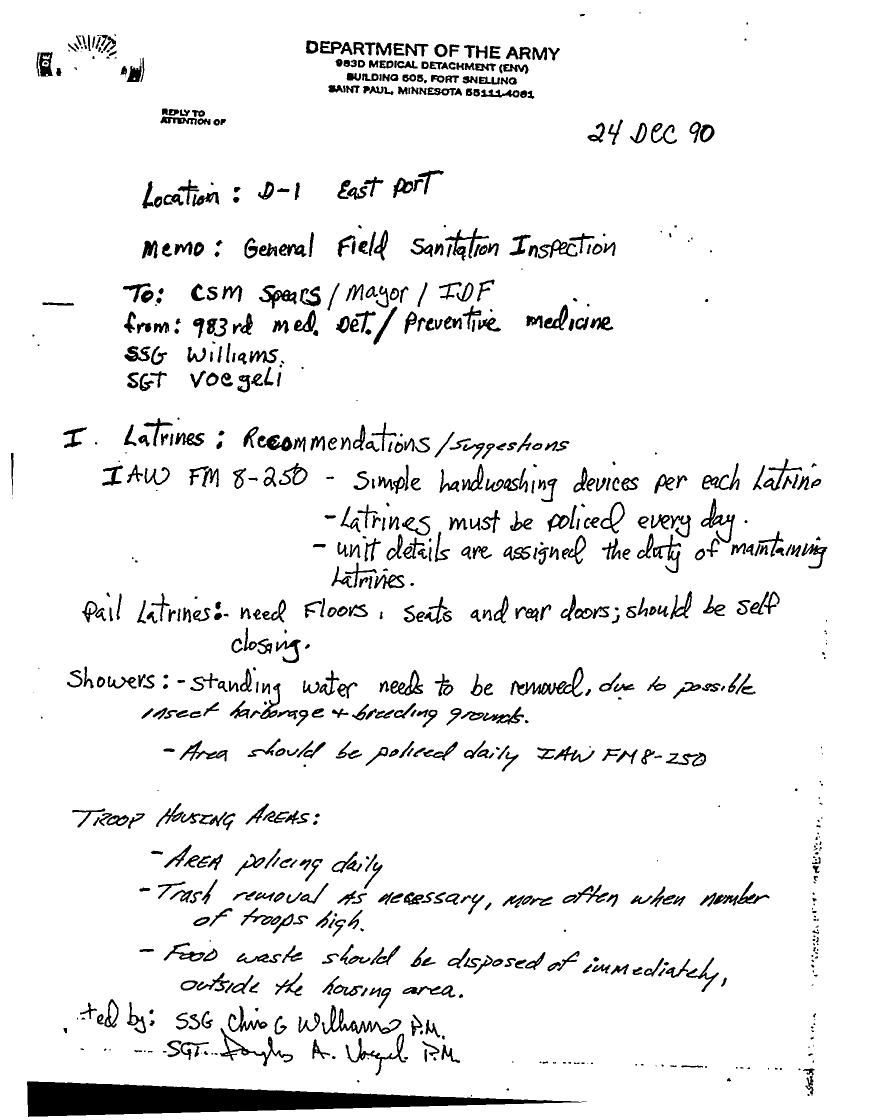 Subject = GENERAL FIELD SANITATION INSPECTION