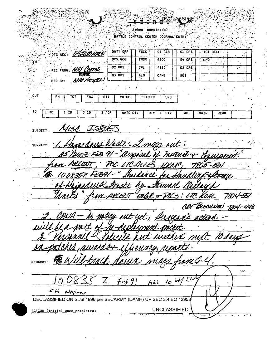 Document 1 f:/Week-25/BX000231/0007 CORPS CHEMICAL BOOK THREE/misc issues 4 mar 91:07129615524743