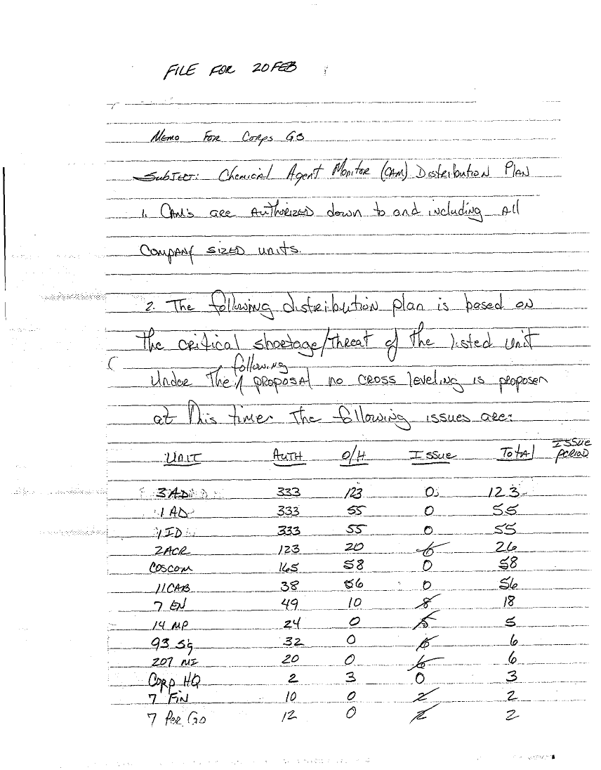 Document 3 f:/Week-24/BX000222/7 CORPS CHEMICAL BOOK 2E/chemical agent monitor distribution plan:07129615525150