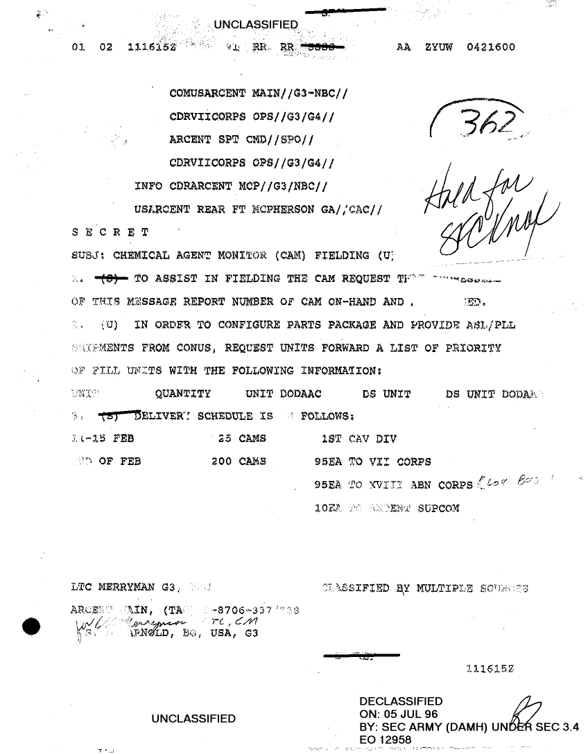 Document 3 f:/Week-24/BX000222/7 CORPS CHEMICAL BOOK 2E/chemical agent monitor distribution plan:07129615525150