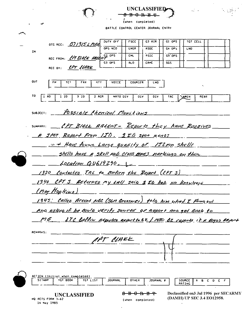 Subject = POSSIBLE CHEMICAL MUNITIONS