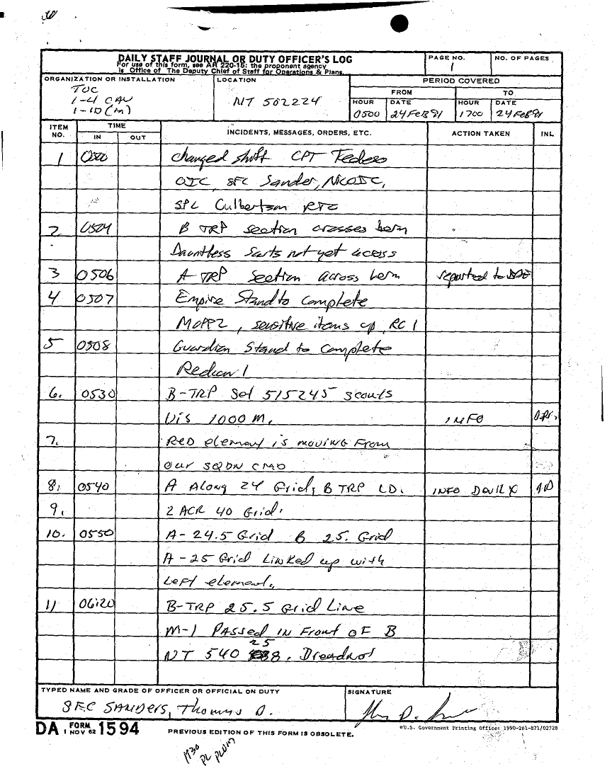 Document 10 f:/Week-27/BX001034/DAILY JOURNAL-STAFF JOURNAL AND TACTICAL OPERATIONS CENTER -TOC- LOGS DESERT STORM 24 FEB 91/daily staff journal:07199611264111