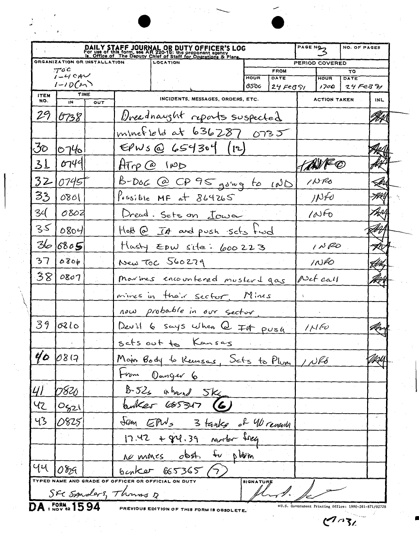 Folder Title = DAILY JOURNAL-STAFF JOURNAL AND TACTICAL OPERATIONS CENTER -TOC- LOGS DESERT STORM 24 FEB 91