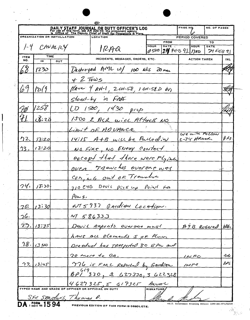 Document 10 f:/Week-27/BX001034/DAILY JOURNAL-STAFF JOURNAL AND TACTICAL OPERATIONS CENTER -TOC- LOGS DESERT STORM 24 FEB 91/daily staff journal:07199611264111