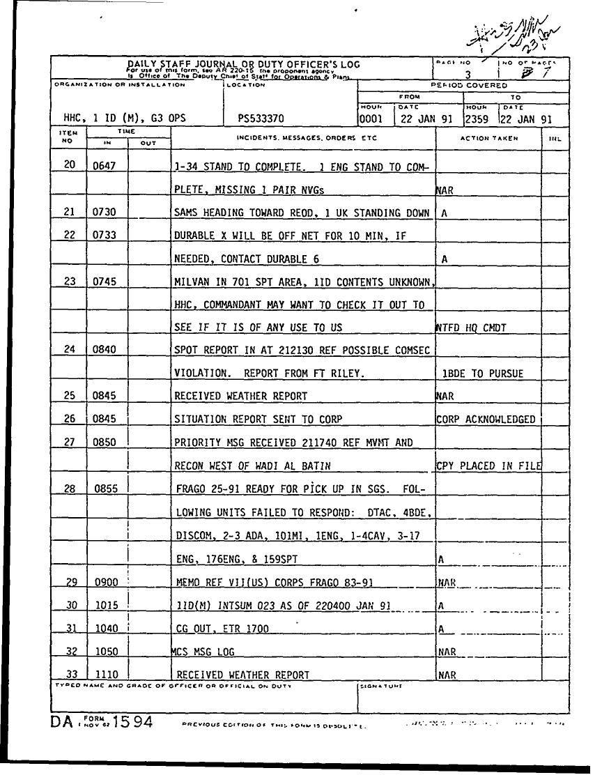 Folder Title = DAILY STAFF JOURNALS JAN 91