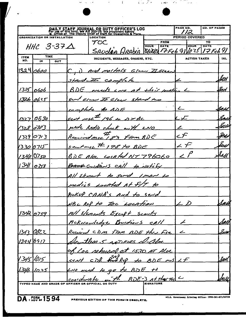 Document 58 f:/Week-27/BX001030/FEBRUARY 1991 DAY 16-23/daily staff journal:0719961126387