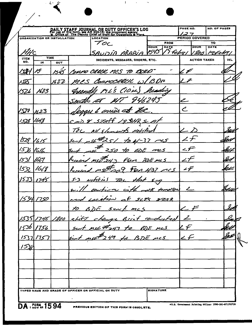 Document 58 f:/Week-27/BX001030/FEBRUARY 1991 DAY 16-23/daily staff journal:0719961126387